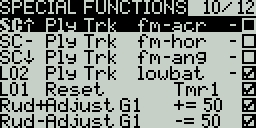 Enable - Toggle on/off to enable the function. To be able to activate the special function by a switch, it must be enabled. This option is usually the last option listed as a checkbox on the far right of the screen. Disabled special functions will not function regardless of the configured switch position.