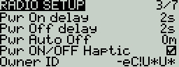 Owner ID (select transmitters) - Custom registration ID used only for users with ISRM internal RF modules, or on transmitters that support FrSky ACCESS external modules. If not configured manually, a random value will be used.