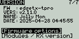 Modules / RX Version Screen - Internal ELRS