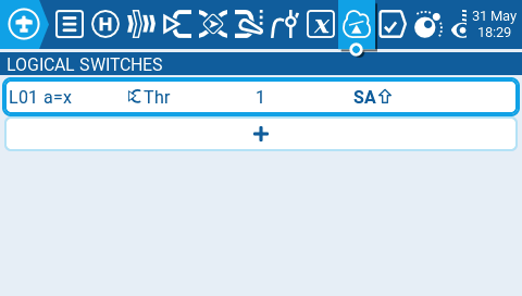 Logical Switches are virtual two-position switches whose values (ON/OFF or +100/-100) are based on the evaluation (true/false) of a defined logical expression. Once configured, logical switches can be used anywhere in EdgeTX that a physical switch can be defined.