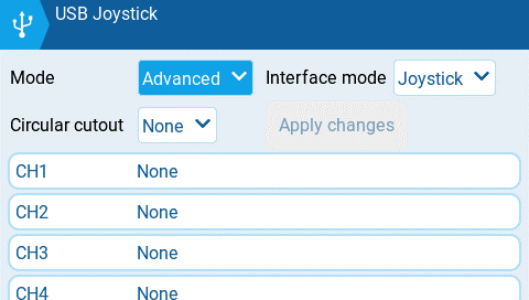 <figure><img src="https://content.gitbook.com/content/P2t2HC29IiiujobytzG7/blobs/3qNqeohn8SloC85isXD8/usbjoystick.png" alt=""><figcaption><p>USB Joystick Advanced mode</p></figcaption></figure>