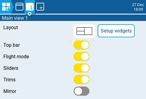 * **Flight mode** - Toggles whether the flight mode name (if configured) will be visible on the selected main view.