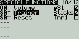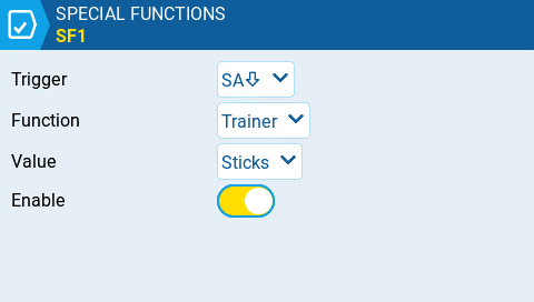 On the Instructor radio, configure the special function ***Trainer***. Designate a switch to activate the mode and make sure the function is enabled.