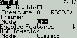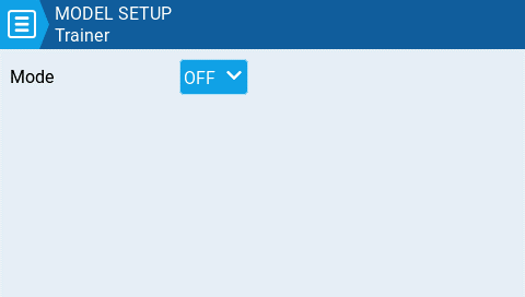 On the Student radio, no configuration of the **Trainer** section in the **Model Settings** or **Radio Settings** is necessary, leave the **Mode** option in the **Trainer** section of **Model Settings** configured to **Off**.