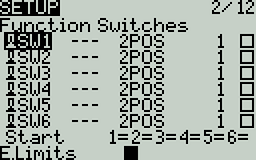 Unlike other switches managed at the radio level, function switches are defined per model and configured in the model setup page. They contain the following configuration options: