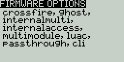 To view the build options that were enabled when compiled, highlight the **\[Firmware options]** options and press the **\[Enter]** button.