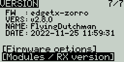 The **Version** screen displays information about the current EdgeTX version that is being used: