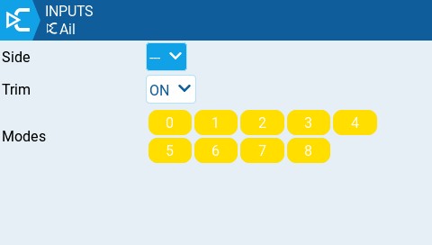 **Modes** - Specifies which flight modes this input is active for.