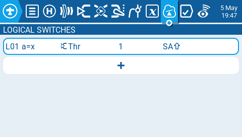 Logical Switches are virtual two-position switches whose values (ON/OFF or +100/-100) are based on the evaluation (true/false) of a defined logical expression. Once configured, logical switches can be used anywhere in EdgeTX that a physical switch can be defined.
