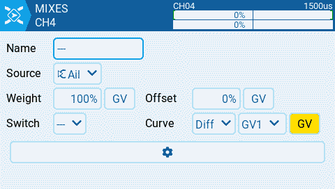 **Step 4:** Now we can adjust our aileron mixer and use the GV1 value for the differential