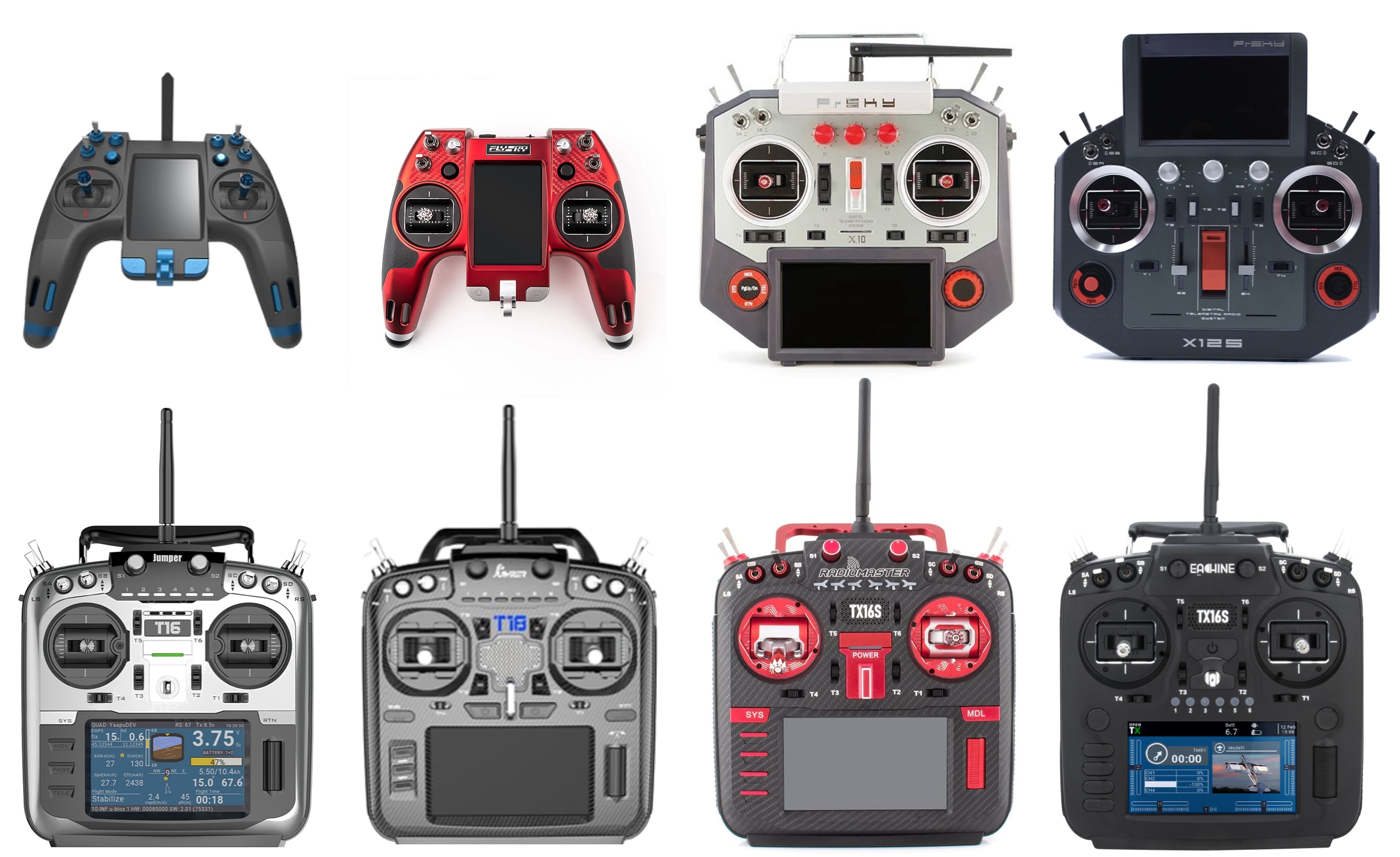 <figure><img src="https://2538274303-files.gitbook.io/~/files/v0/b/gitbook-x-prod.appspot.com/o/spaces%2FjAgpAXMB9RpRNV8hOqZD%2Fuploads%2FU2jAO4RL65d9HCyRKYsv%2Fcolorradios.jpg?alt=media&#x26;token=800a0e52-b259-4a7b-84f3-6fffcd46656d" alt=""><figcaption><p>EdgeTX supported color screen radios</p></figcaption></figure>